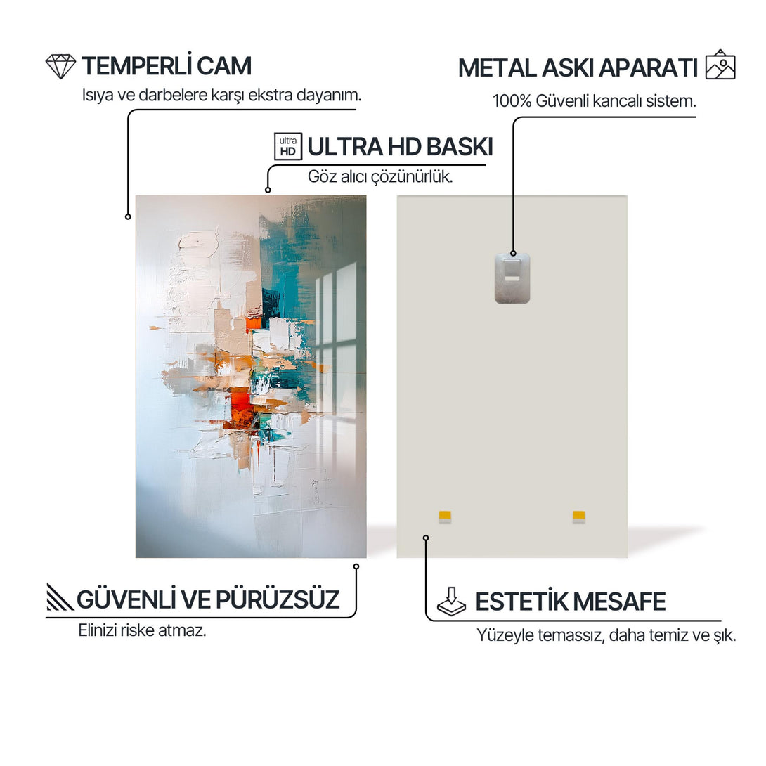 Bu cam tablo, yaşam alanınıza sade bir zarafet ve derinlik katmak için tasarlandı. 4 mm temperli cam sayesinde güçlü, dayanıklı ve zamana meydan okur.