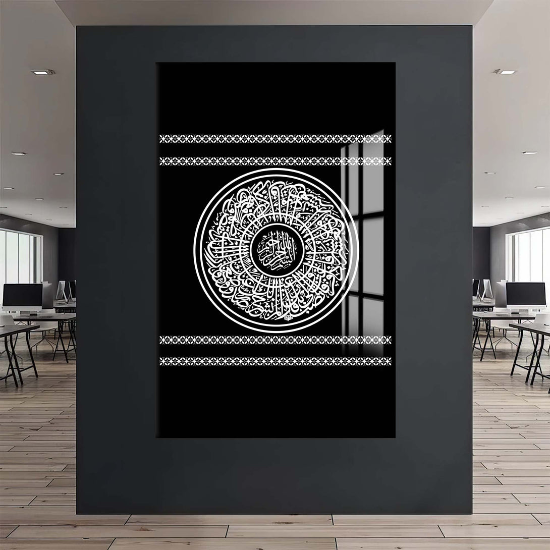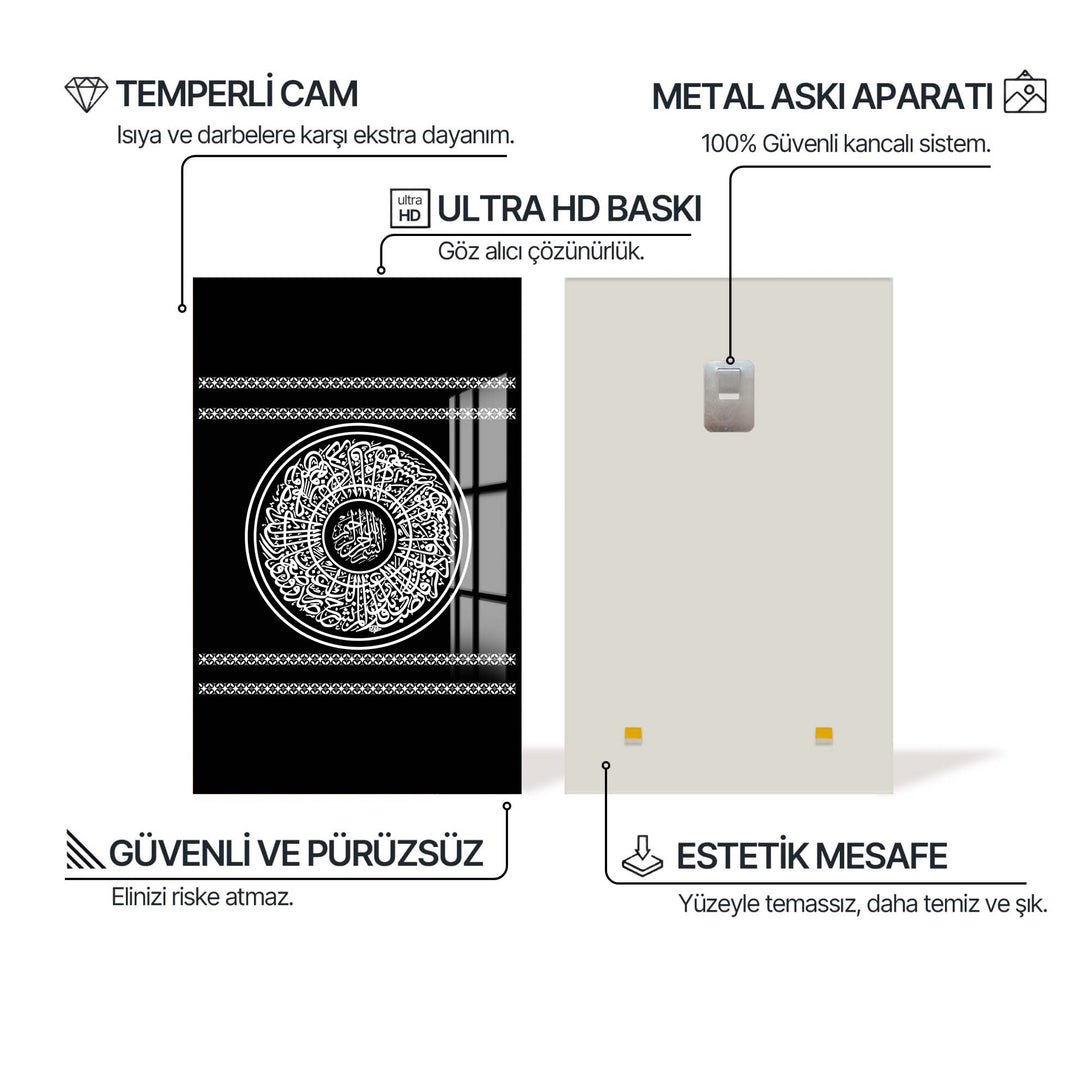 Koruyucu ayetleri evinize taşımak isteyenler için Dini Cam Tablolar arasında seçkin bir yere sahip olan bu cam tablo, huzur ve güven hissi sağlar.