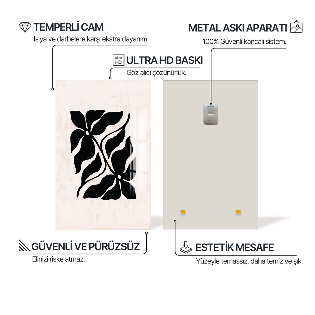 Bu cam tablo, yaşam alanınıza sade bir zarafet ve derinlik katmak için tasarlandı. 4 mm temperli cam sayesinde güçlü, dayanıklı ve zamana meydan okur.