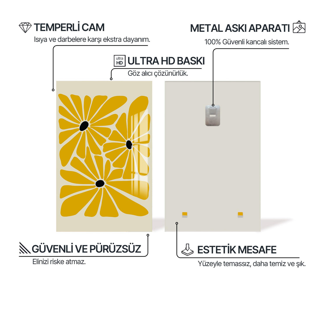 Bu cam tablo, yaşam alanınıza sade bir zarafet ve derinlik katmak için tasarlandı. 4 mm temperli cam sayesinde güçlü, dayanıklı ve zamana meydan okur.