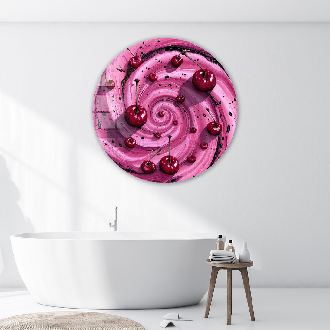 Kiraz Girdabı Yuvarlak Cam Tablo