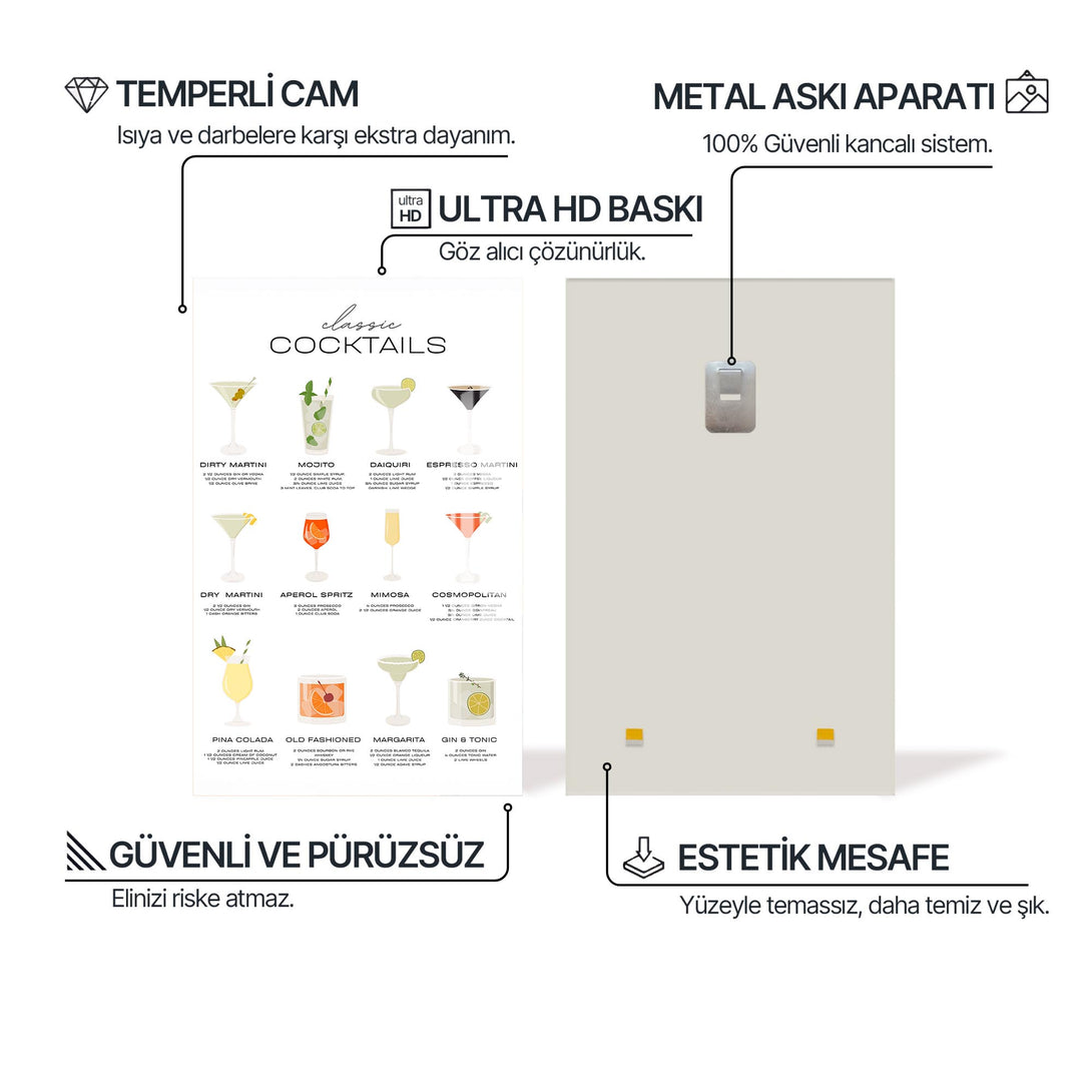 Dirty Martini'den Margarita’ya birçok kokteylin yer aldığı bu koleksiyon cam tablo olarak duvarlarınızı süslesin. Alkollü içecekler tutkunları için hepsi bir arada.