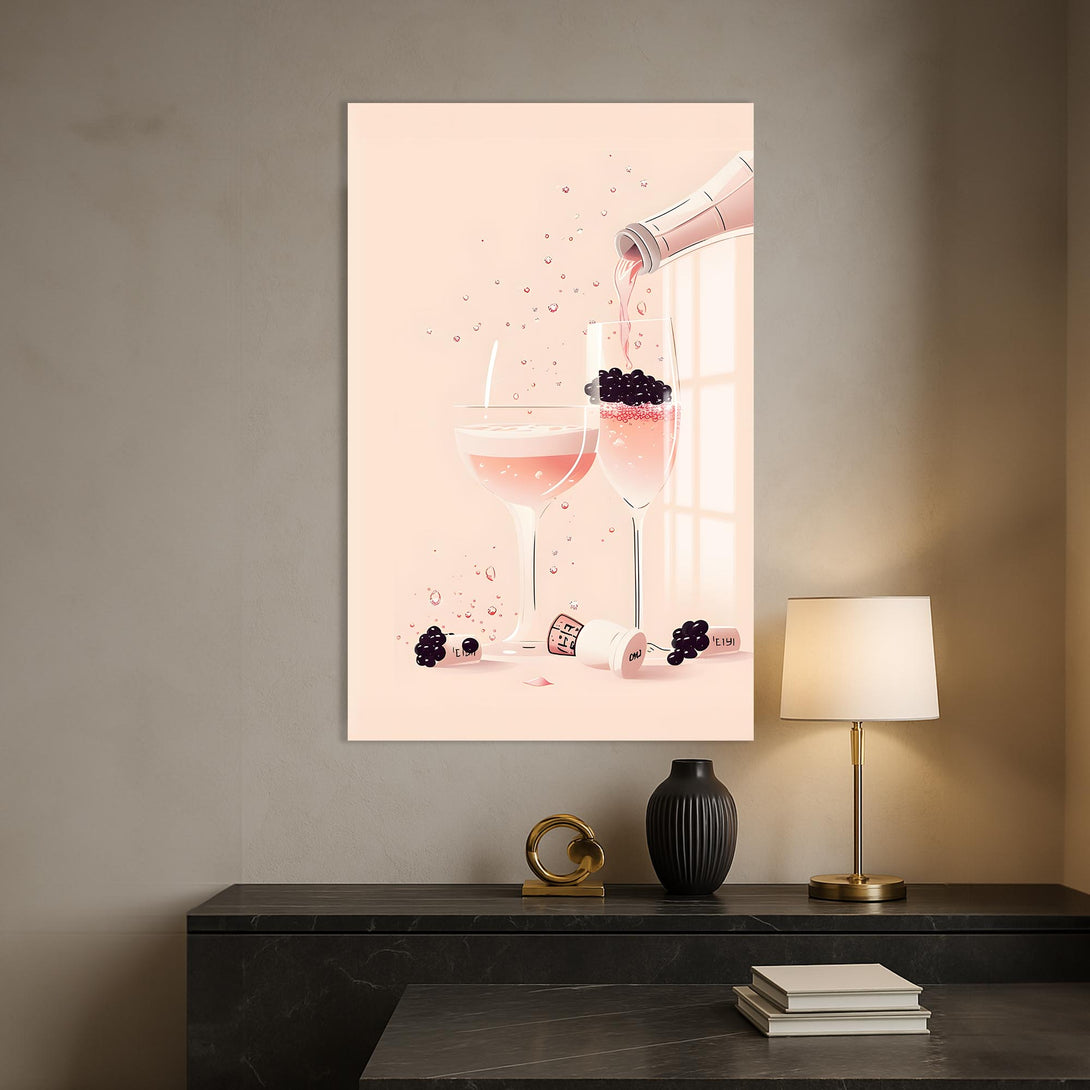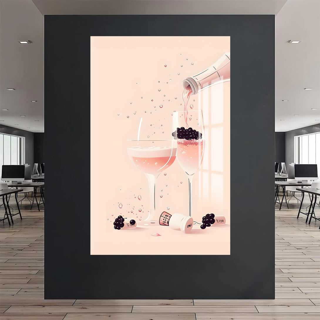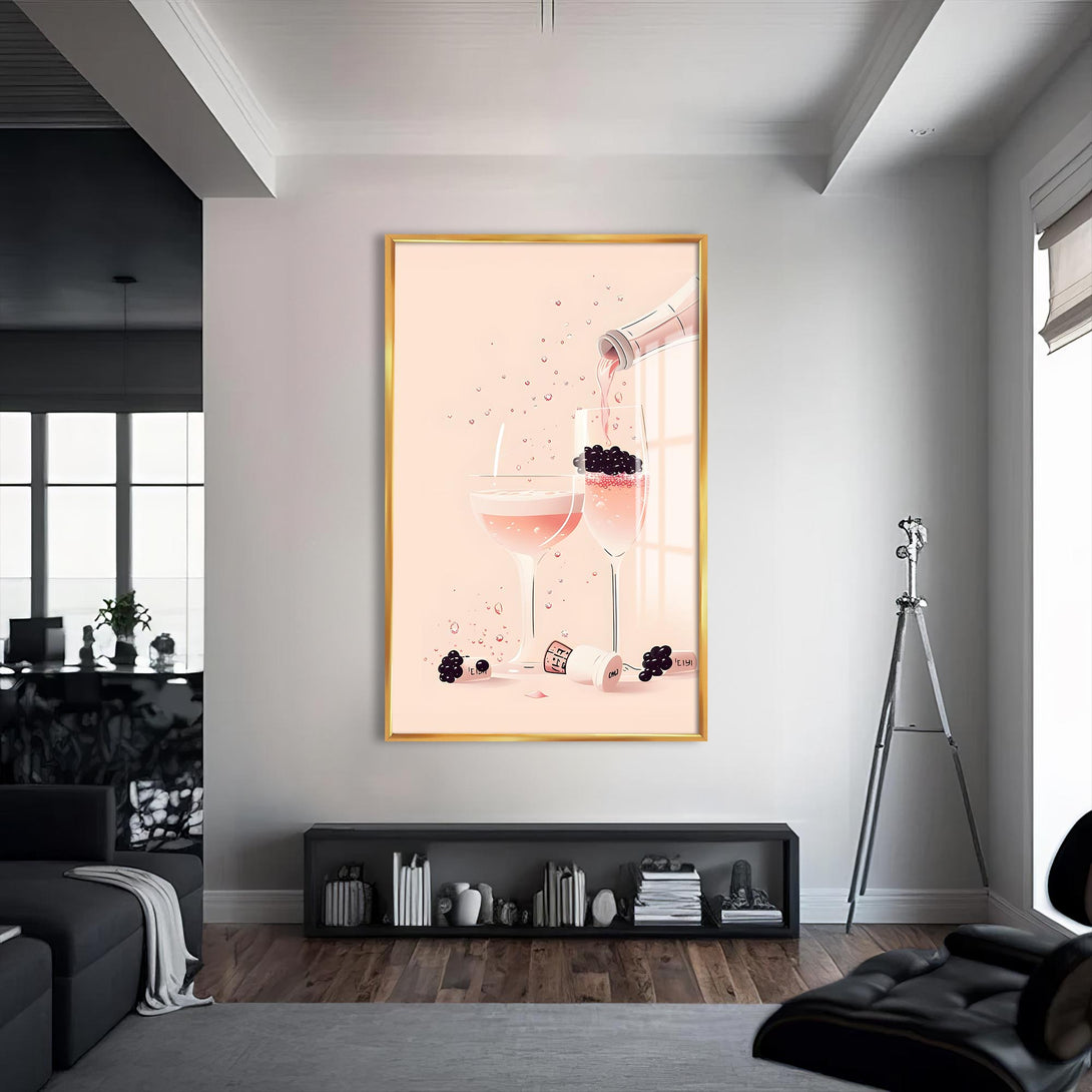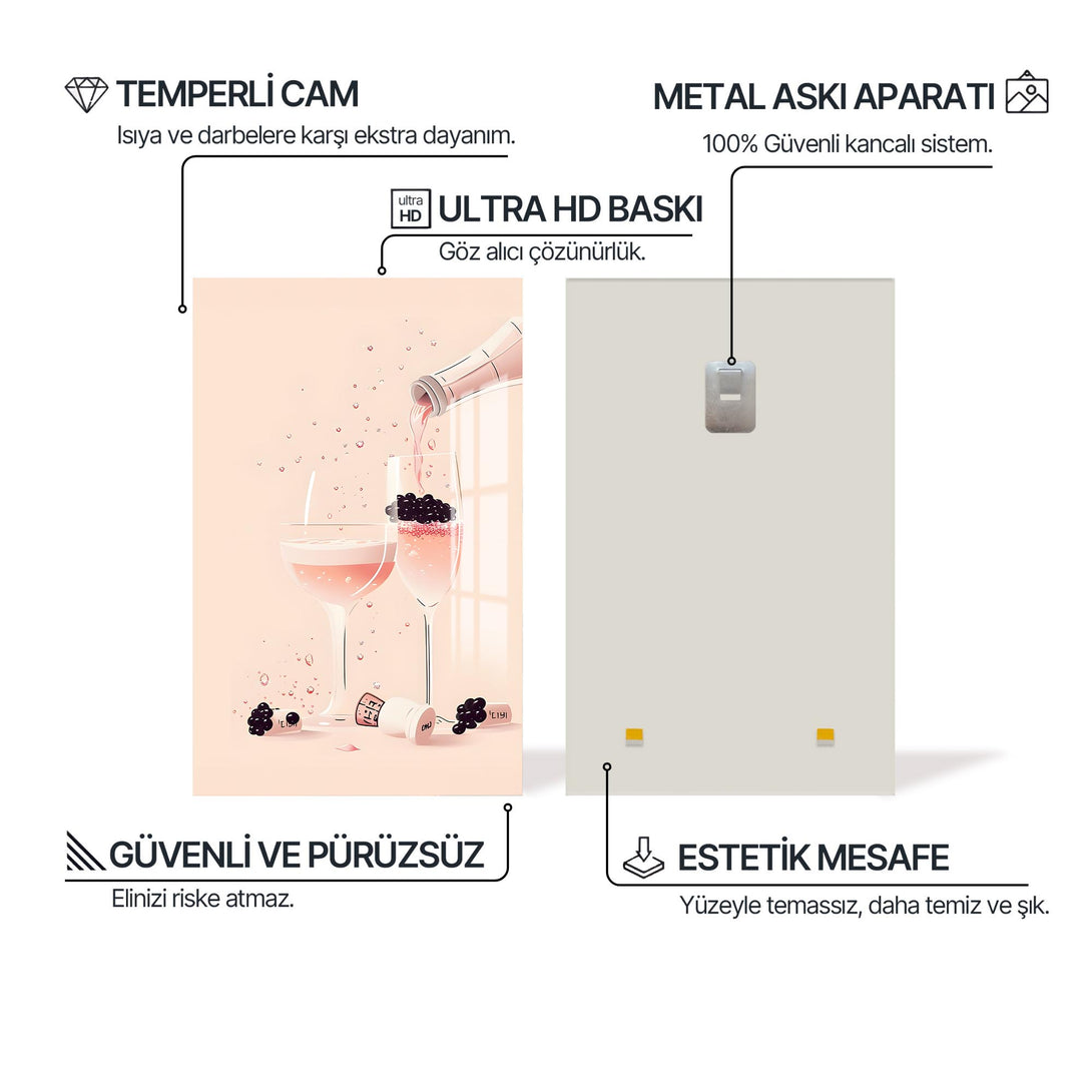 Kadehte sıçrayan siyah meyveler, bu etkileyici cam tablo ile zarafetle buluşuyor. Şampanya sevenler için tasarlanan bu eser, alkollü içecekler koleksiyonunun dikkat çeken parçalarındandır.