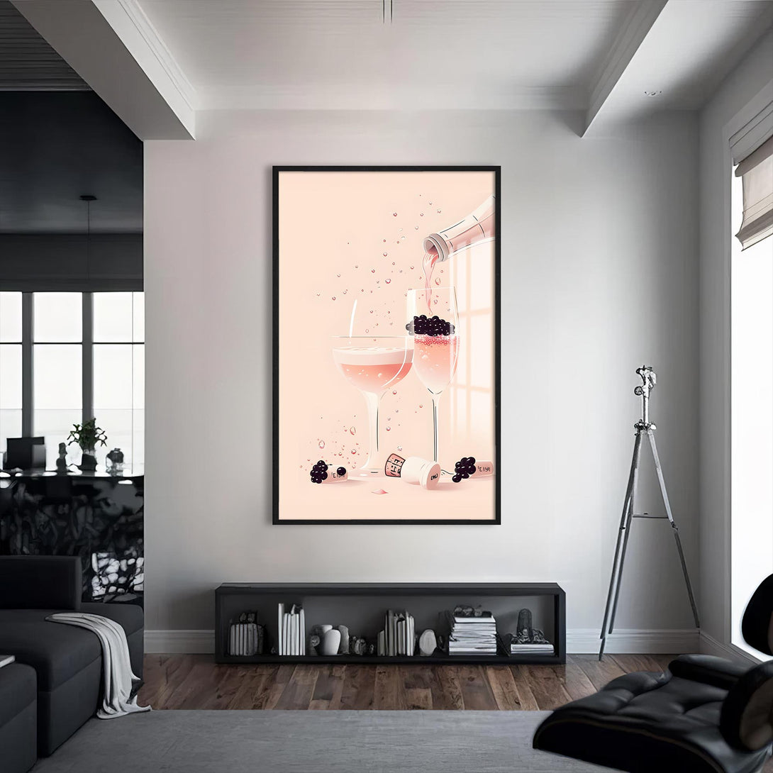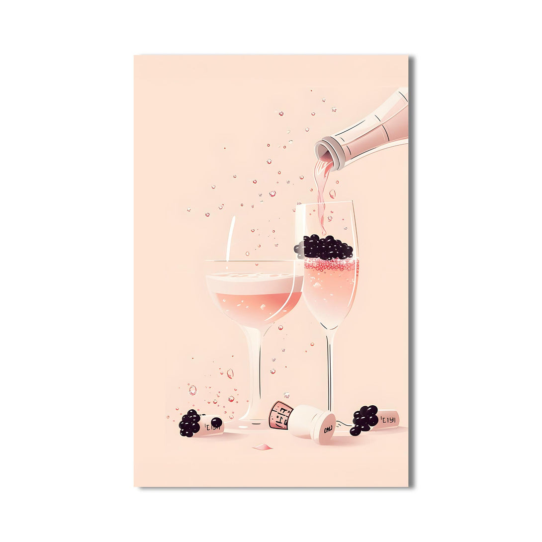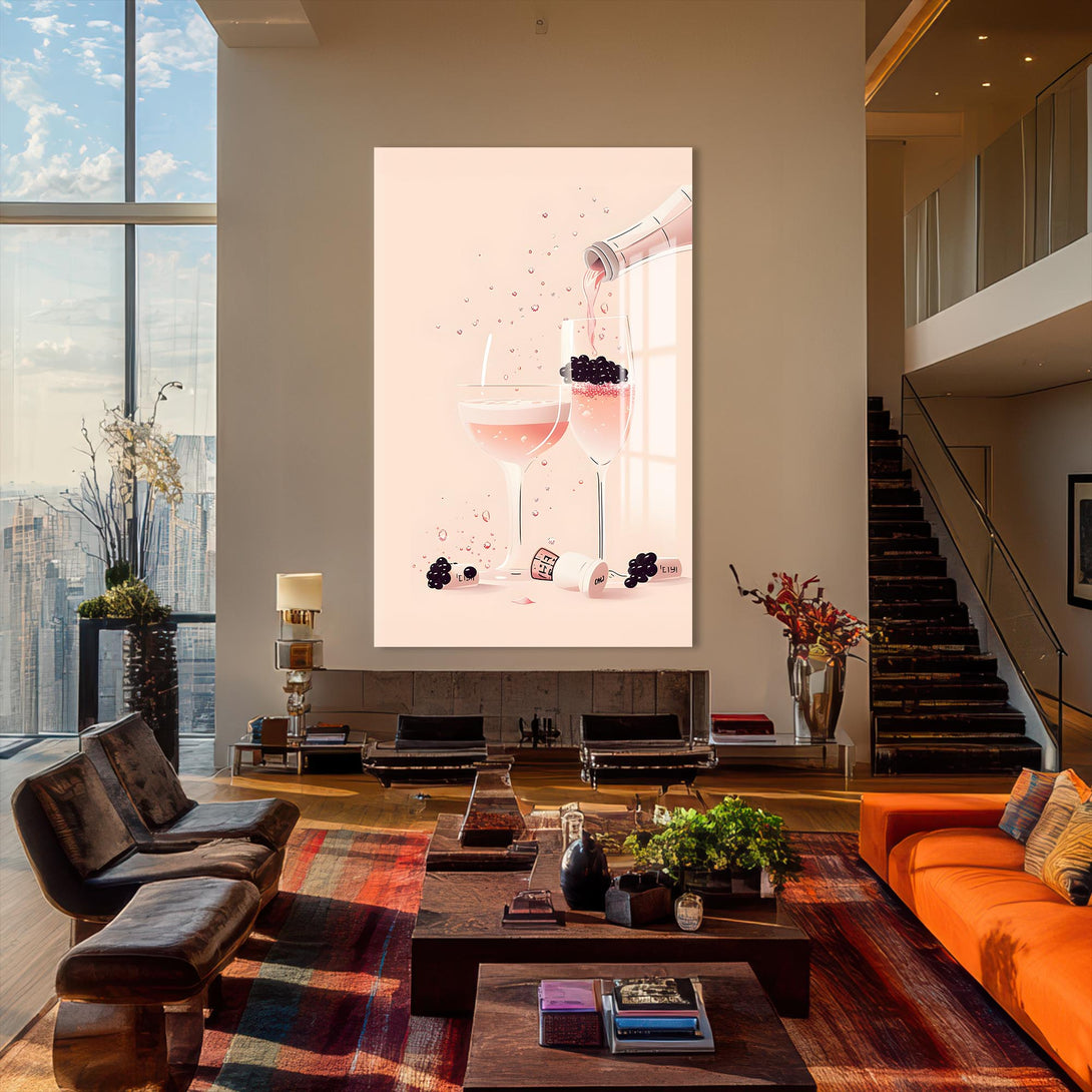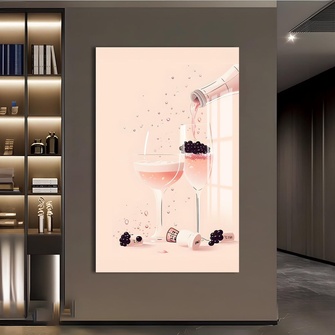 Kadehte sıçrayan siyah meyveler, bu etkileyici cam tablo ile zarafetle buluşuyor. Şampanya sevenler için tasarlanan bu eser, alkollü içecekler koleksiyonunun dikkat çeken parçalarındandır.