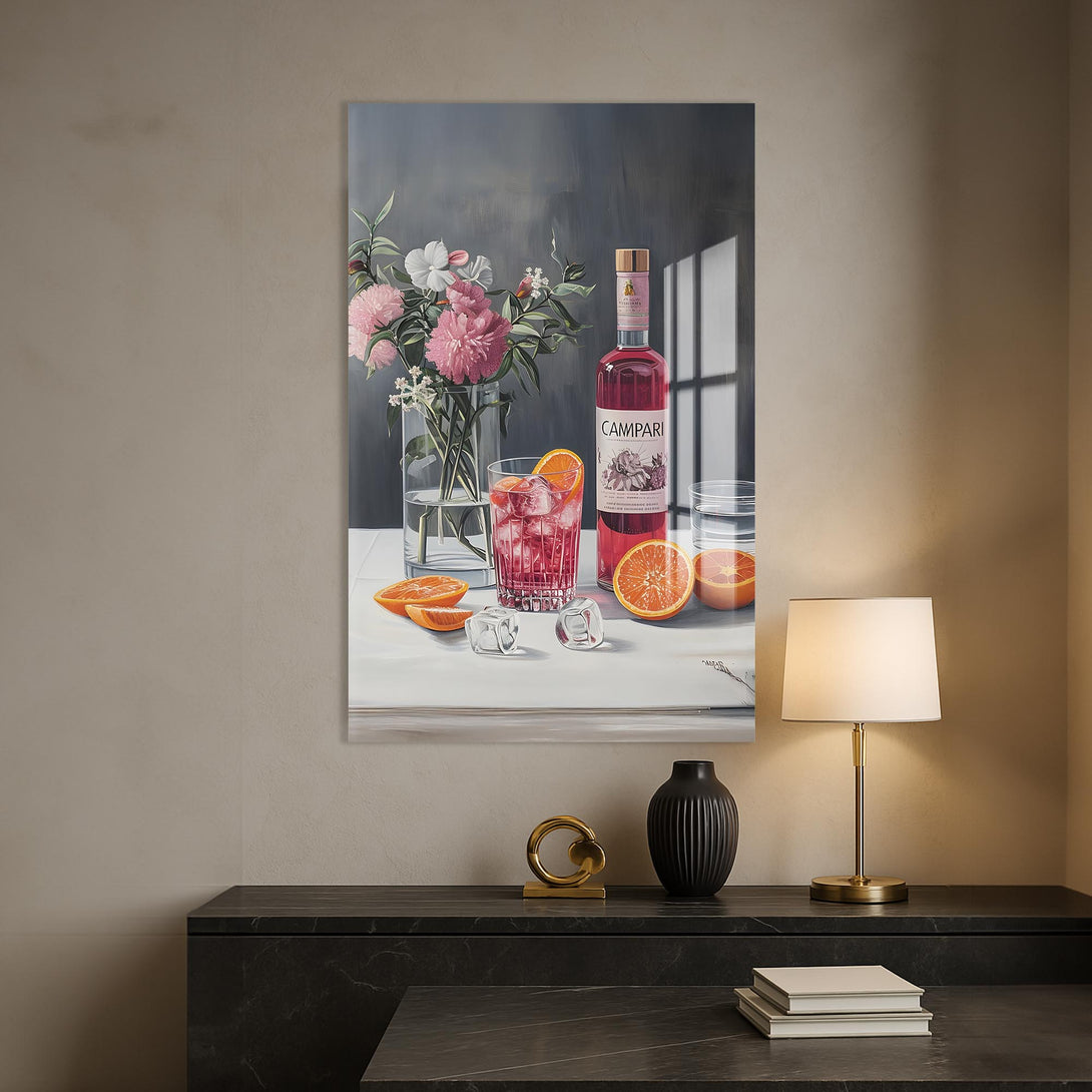 Brunch sofralarının vazgeçilmezi Mimosa, bu cam tablo tasarımında zarifçe sunuluyor. Alkollü içecekler serisinin en hafif üyesi.