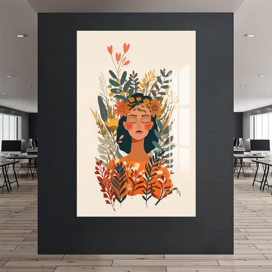Sonsuz Çayır Sessiz Kadın Cam Tablo