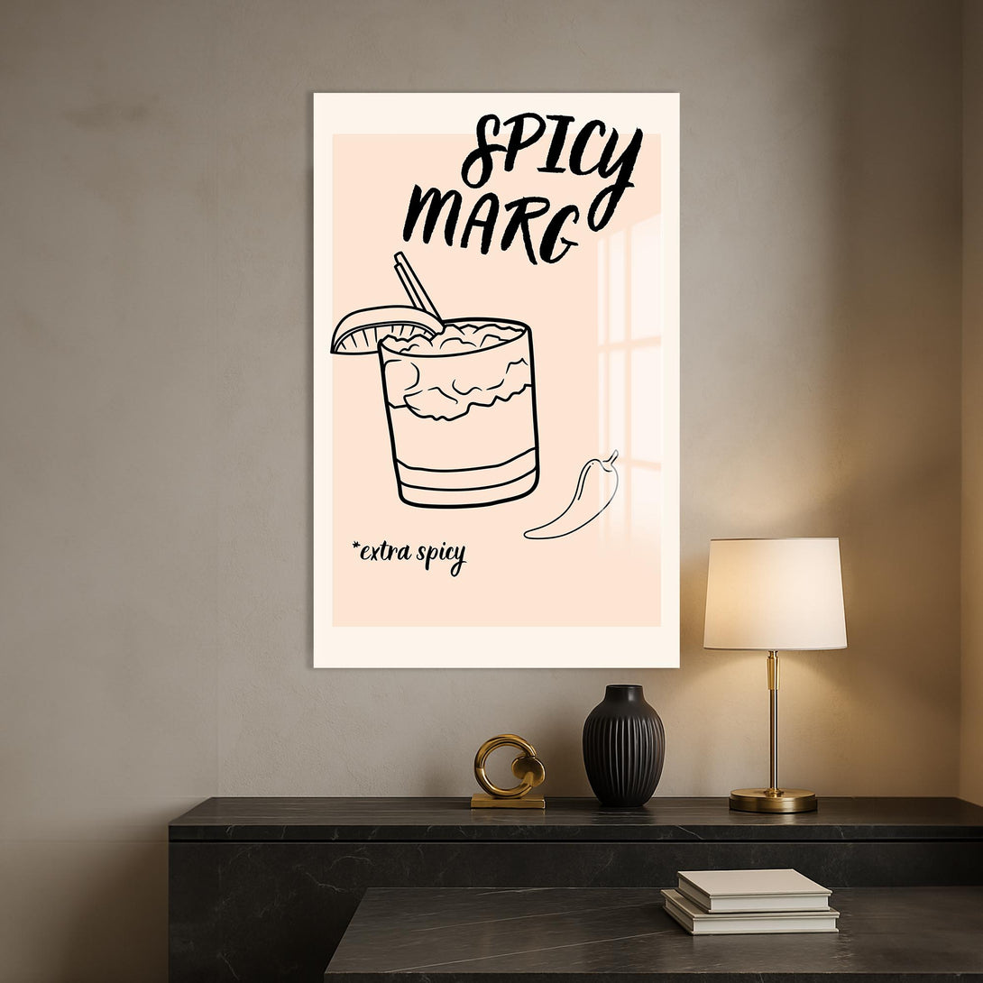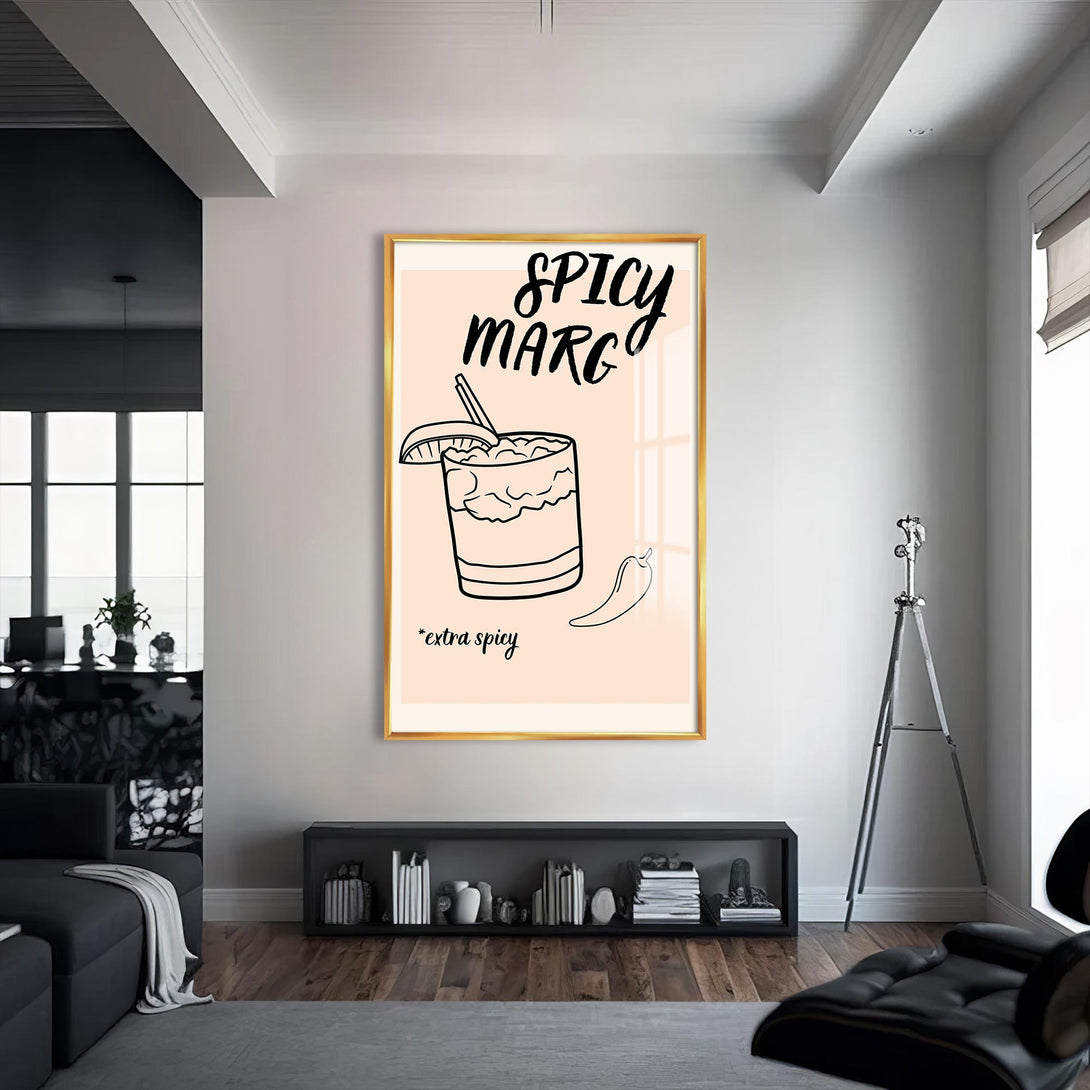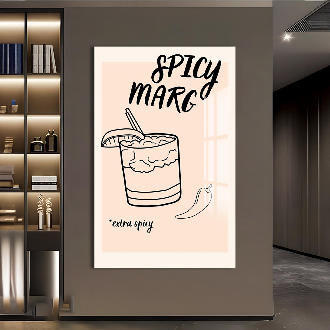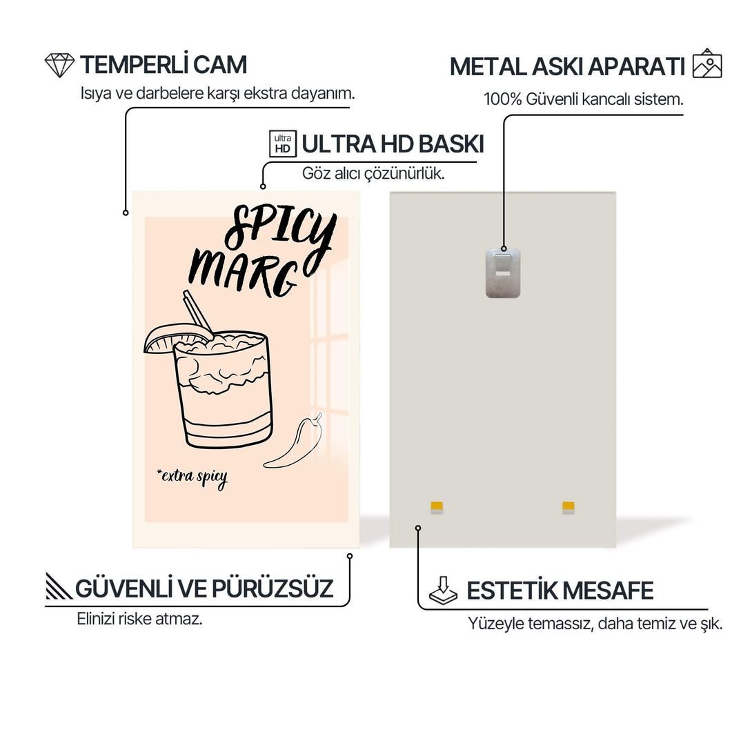 Sade ama vurucu bir çizimle hazırlanmış bu cam tablo, acılı Margarita tutkunları için birebir. Alkollü içecekler konseptine farklı bir yorum katıyor.