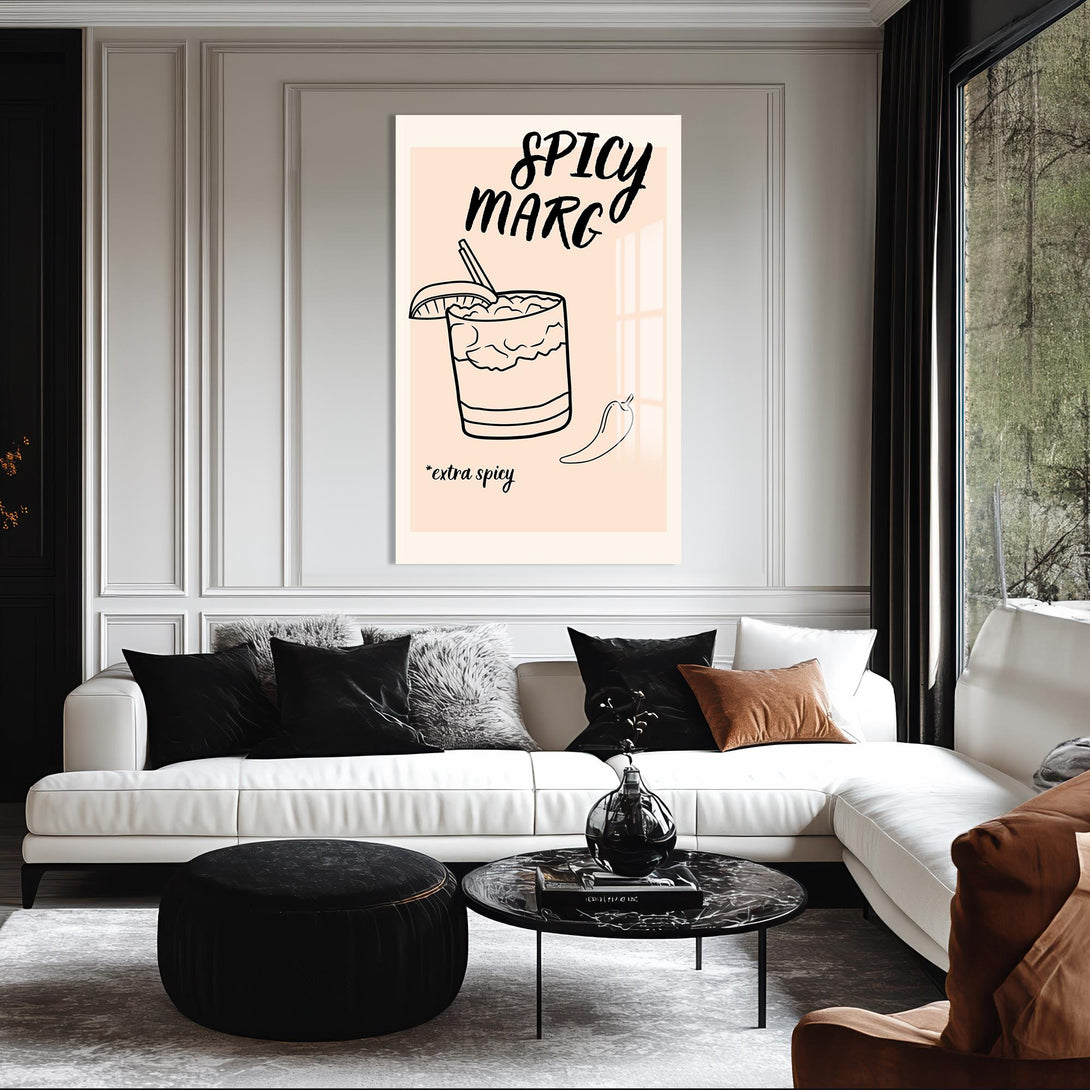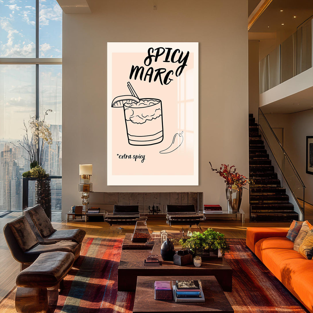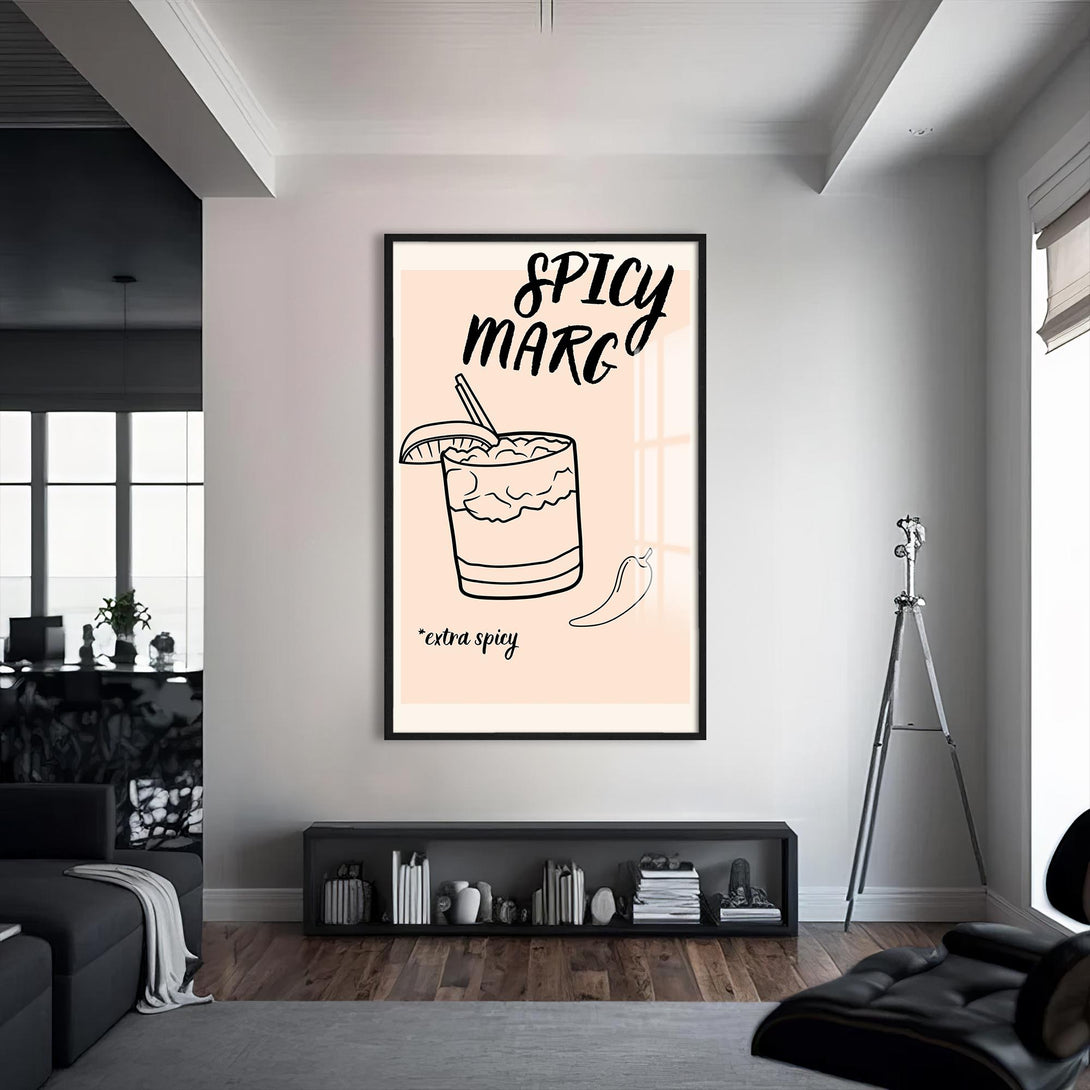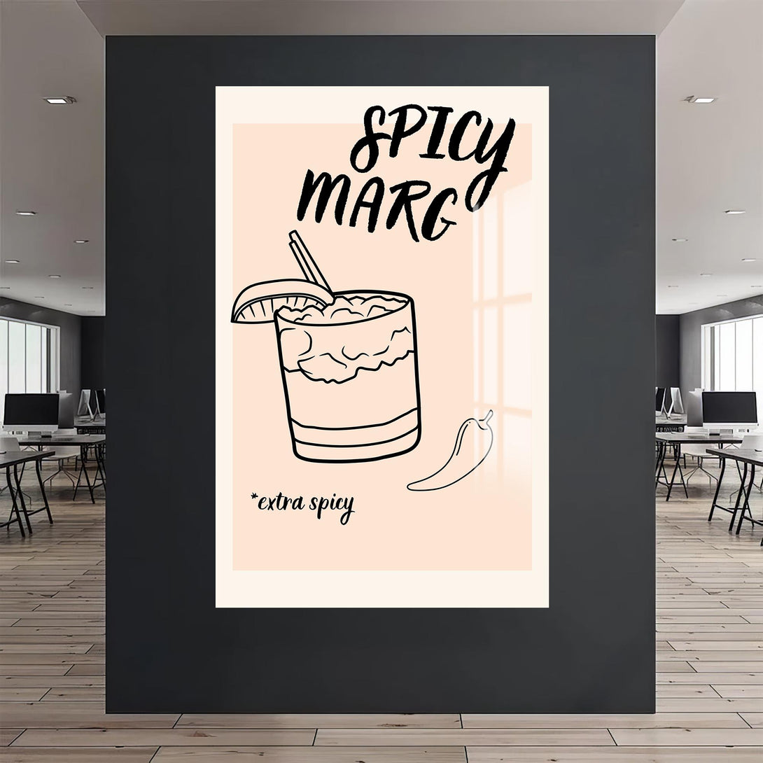 Sade ama vurucu bir çizimle hazırlanmış bu cam tablo, acılı Margarita tutkunları için birebir. Alkollü içecekler konseptine farklı bir yorum katıyor.