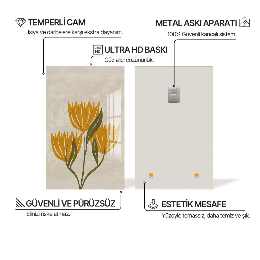 Bu cam tablo, yaşam alanınıza sade bir zarafet ve derinlik katmak için tasarlandı. 4 mm temperli cam sayesinde güçlü, dayanıklı ve zamana meydan okur.