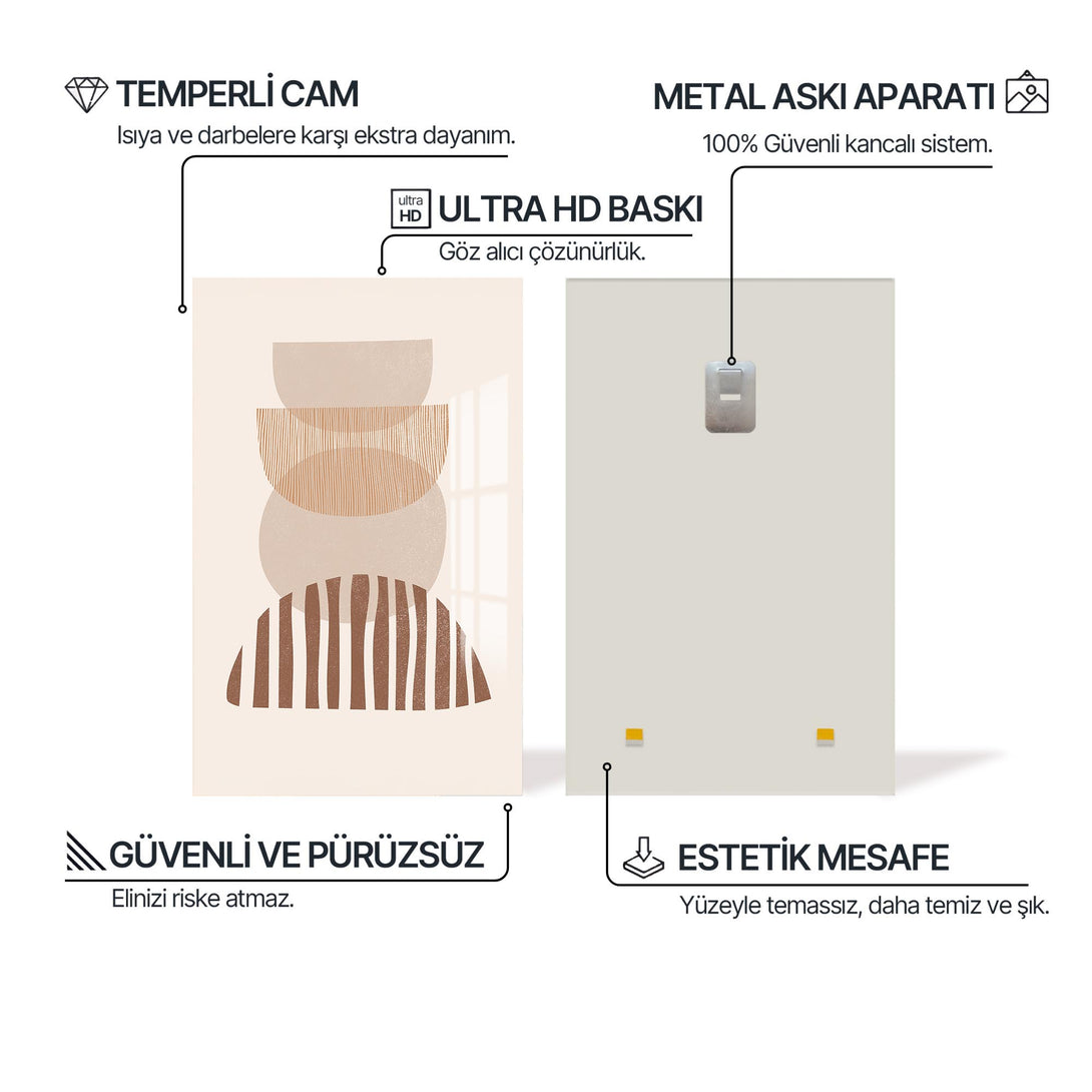 Bu cam tablo, yaşam alanınıza sade bir zarafet ve derinlik katmak için tasarlandı. 4 mm temperli cam sayesinde güçlü, dayanıklı ve zamana meydan okur.