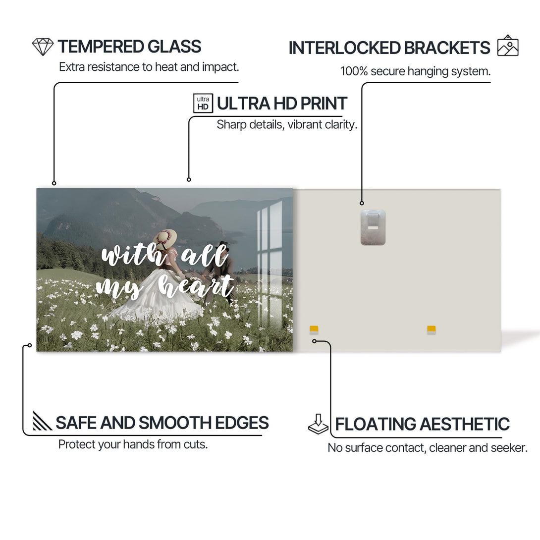 Bu cam tablo, yaşam alanınıza sade bir zarafet ve derinlik katmak için tasarlandı. 4 mm temperli cam sayesinde güçlü, dayanıklı ve zamana meydan okur.