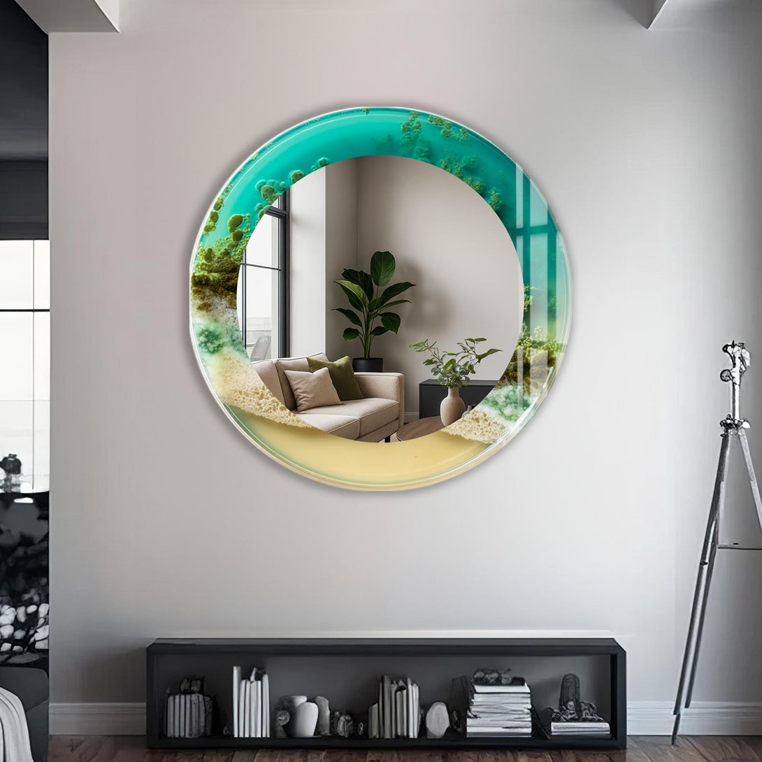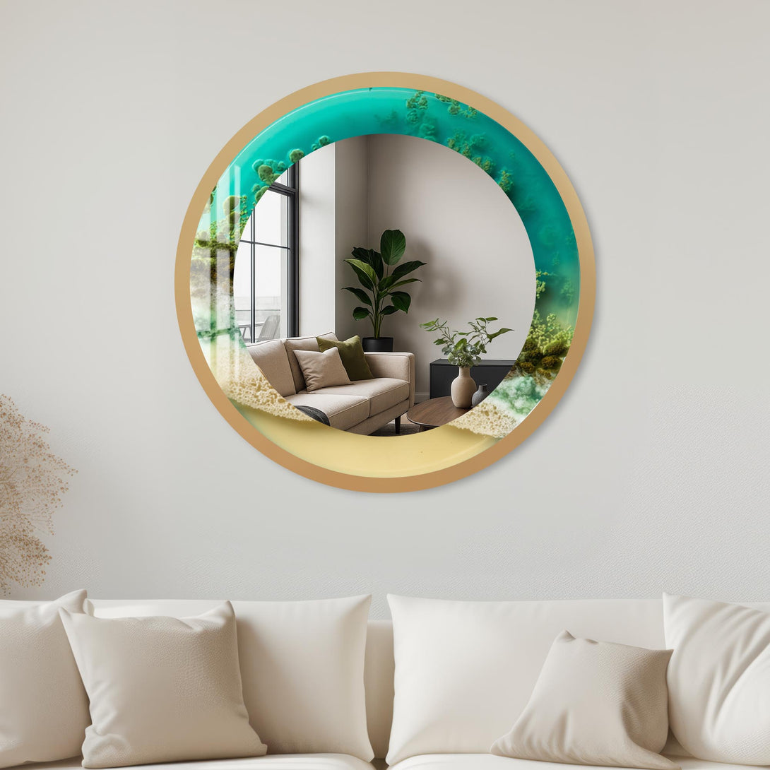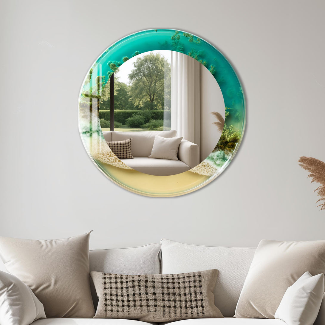 Organik kıyı formları: Yeşil Doku Cam Tablo Yuvarlak Ayna