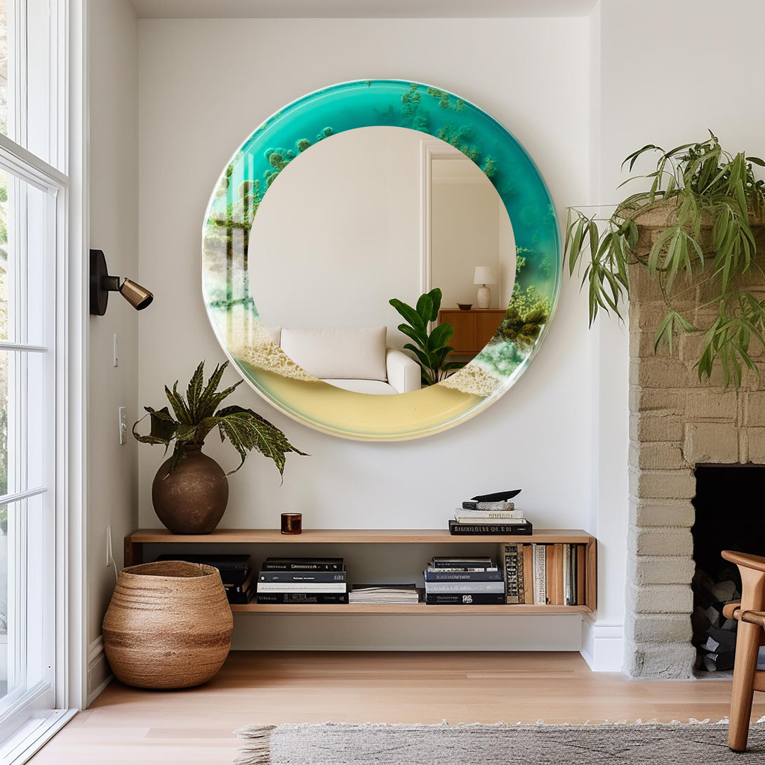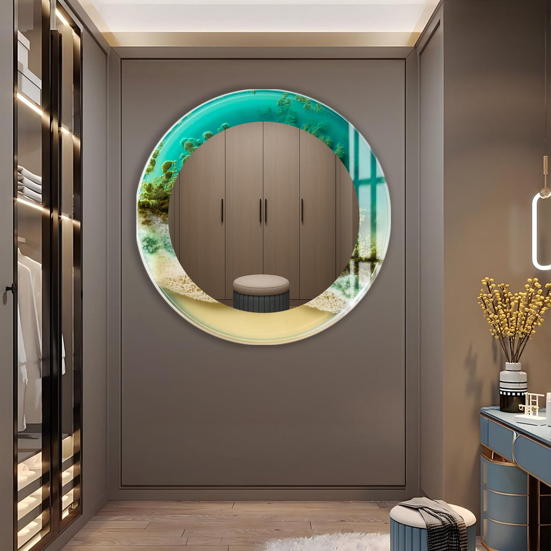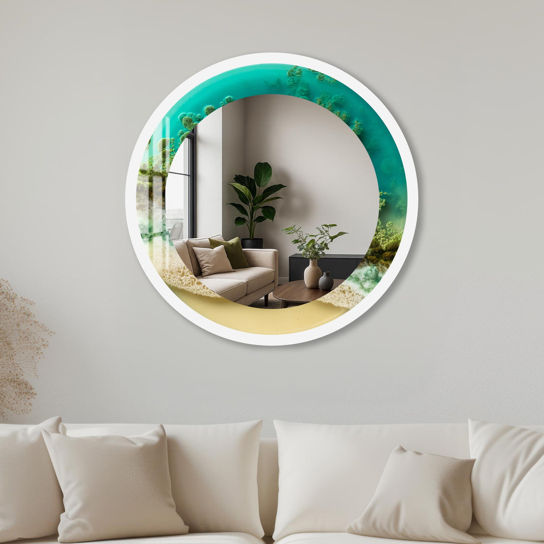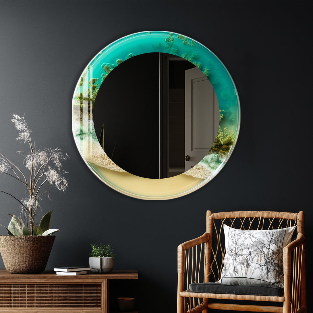Organik kıyı formları: Yeşil Doku Cam Tablo Yuvarlak Ayna