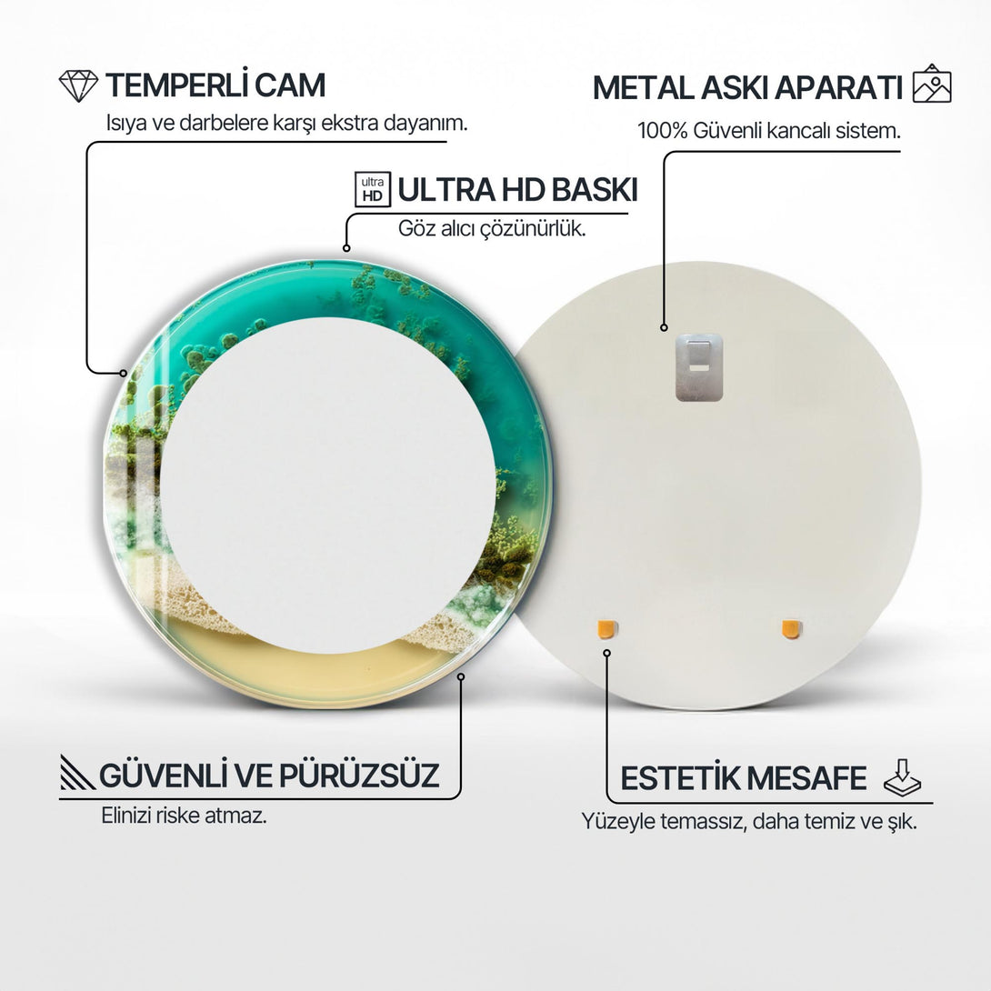 Kenarlarında yosun ve deniz köpüğü hissi taşıyan bu cam tablo, doğayı anımsatır.